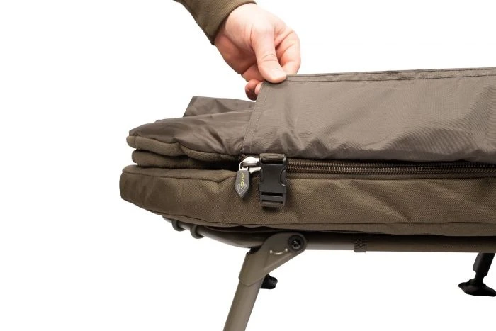 by simply unzipping each side, then releasing the toggles at the foot end.