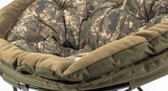 De beroemde indulgence moon chair comfort, nu geupdate met een micro fleece gevoerde zijkant en een indulgence logo in reliëf rond de luxe peachskin bedekte matras die in de unieke nash camo is afgewerkt.