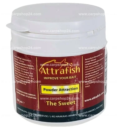 Powder Attraction The Sweet is een neutraal geurende, zoete lokstof. Leuk om weten is dat zowel witvis als karper een voorliefde hebben voor zoet aas. Deze zoete lokstof is het gehele jaar inzetbaar.