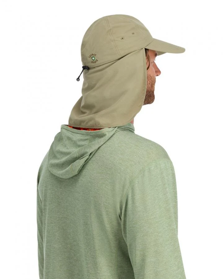 For blazing sun and biting bugs, this long-bill Simms Bugstopper Sunshield Cap Stone provides UPF50 protection and proven Insect Shield® performance.