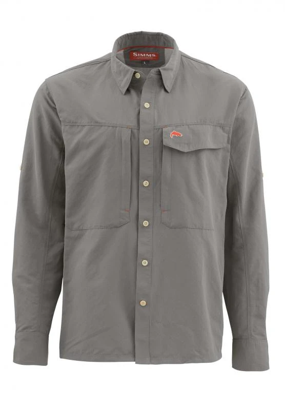 Elevate your fishing kit in the Simms’ Guide Shirt. The men’s shirt is built with fabric that wicks moisture, dries quickly and offers UPF 50 performance. A mesh-lined back panel allows air to circulate to help keep you cool, and Extended Sun Cuffs help protect from the sun’s harmful rays. Three zippered fly-box compatible pockets add storage space.